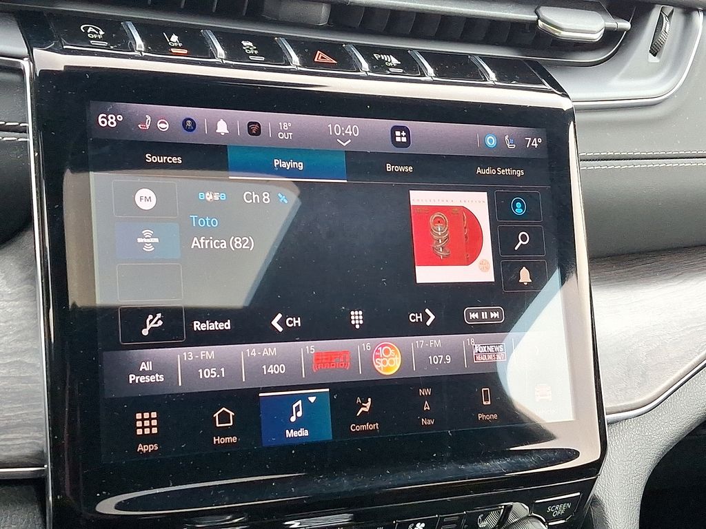 Indulge in the unparalleled luxury and technology of this Overland trim. The Luxury Tech Group IV offers a host of premium features, including 4-zone automatic climate control, a rearview autodim digital display mirror, and power-adjustable front seats with massage functionality. The state-of-the-art Uconnect 5 Nav system with a 10.1-inch touchscreen display and 19-speaker high-performance audio system will elevate your entertainment experience.