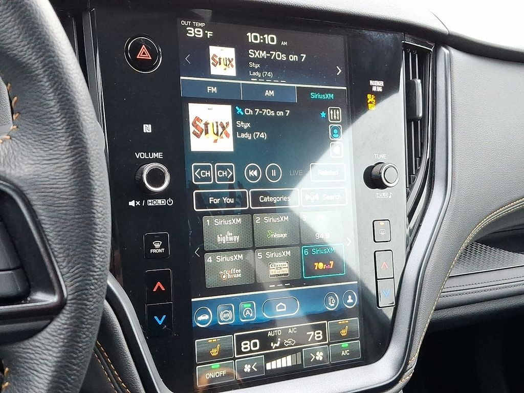 AM/FM radio: SiriusXM, Auto High-beam Headlights, Auto-dimming Rear-View mirror, Exterior Parking Camera Rear, Front dual zone A/C, Garage door transmitter: HomeLink, Heated rear seats, Heated steering wheel, Leather steering wheel, Power driver seat, Power Liftgate, Power Moonroof, Power Moonroof & Navigation & RAB, Power passenger seat, Radio: Subaru STARLINK 11.6" Multimedia Nav System, Remote keyless entry, Reverse Automatic Braking (RAB) System, Split folding rear seat, StarTex-Trimmed Upholstery, Steering wheel mounted audio controls, Traction control, Wheels: 17" x 7J Matte Black Aluminum-Alloy.
